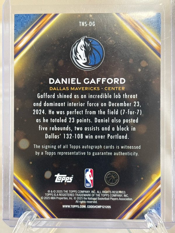 Daniel Gafford TNS-DG 2025 Topps Notch Signatures Holo Black Foil 02/10 Auto
