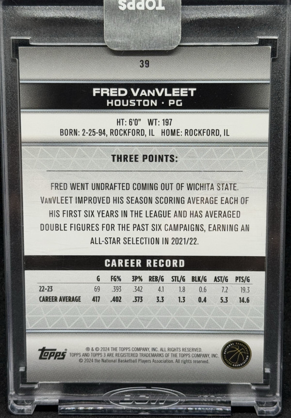 Fred Vanvleet 2024 Topps 3 #39 Gold 01/10 - Rockets