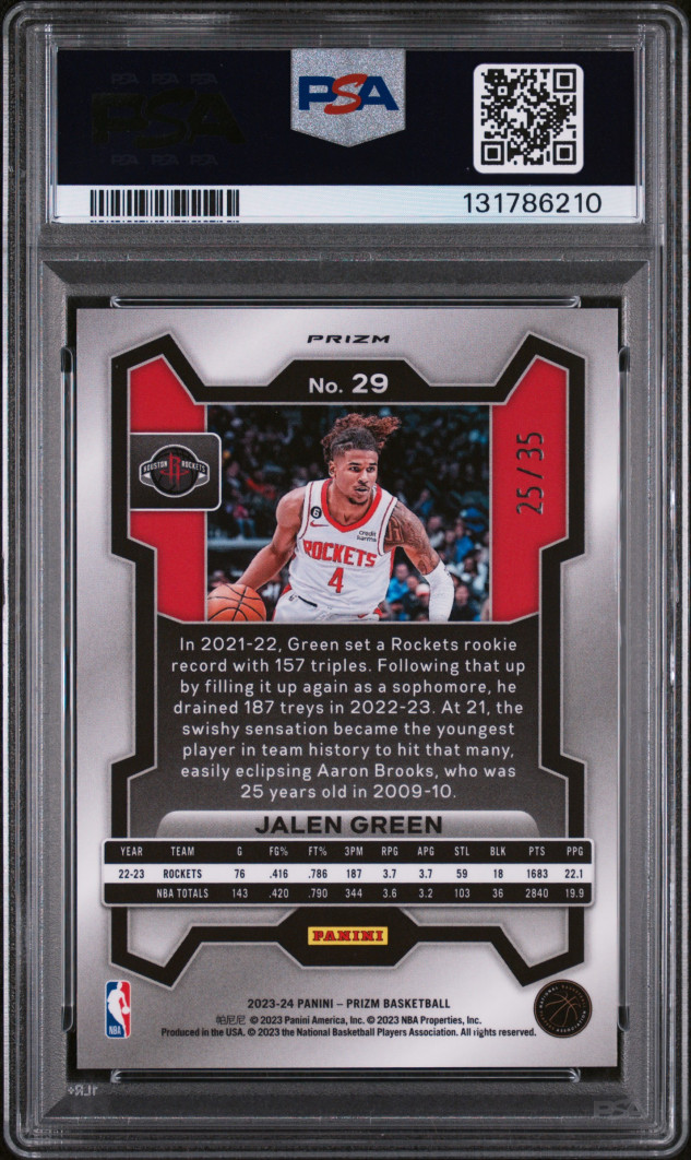 Jalen Green 2023 Panini Prizm #29 White Ice 25/35 PSA 9 - Rockets, Suns