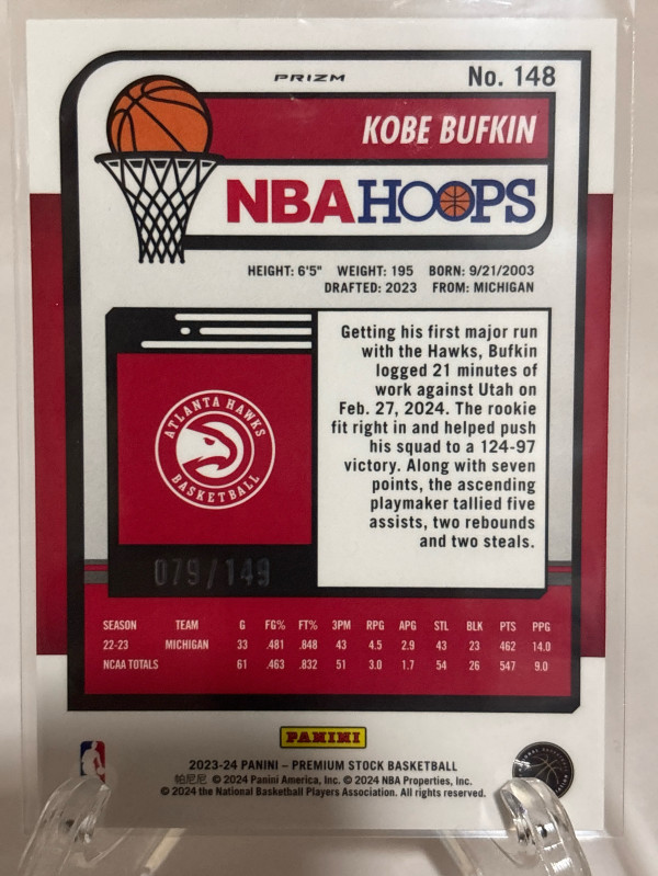 Kobe Bufkin #148 2023-24 Panini Premium Stock Purple Ice Prizm 079/149