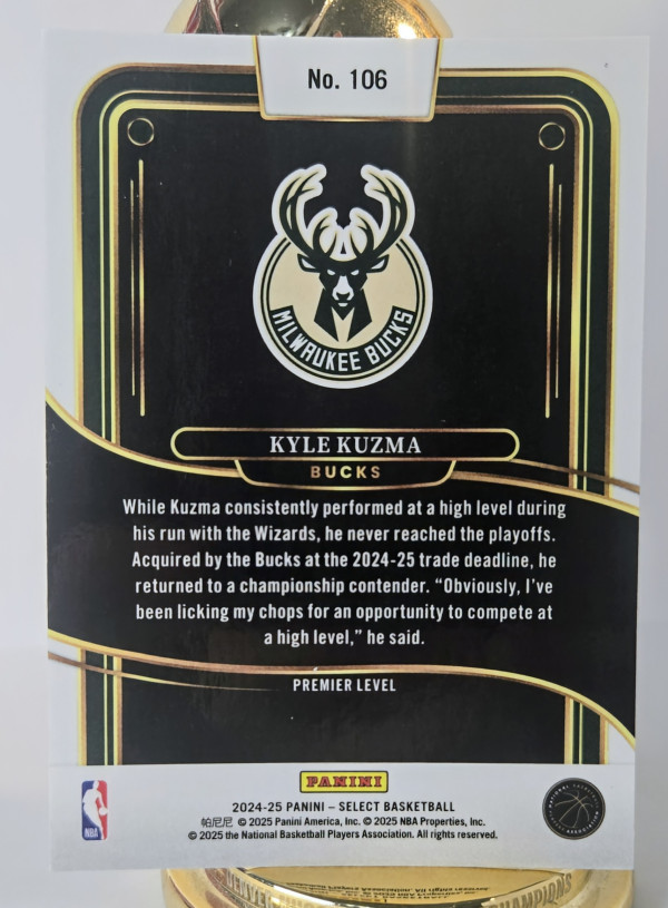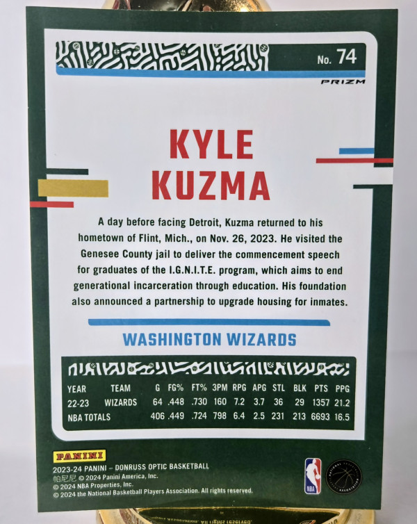 Kyle Kuzma -'23-24 Donruss Optic Hyper Pink, '24-25 Select Premier Level