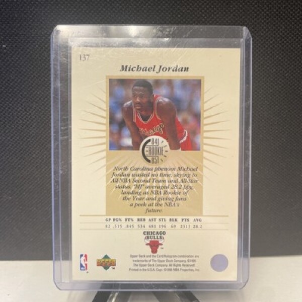 Capture a piece of basketball history with the 1995-96 Upper Deck #137 sports trading card featuring the legendary Michael Jordan. Celebrate Jordan's iconic tenure with the Chicago Bulls during a season that solidified his status as an NBA powerhouse. This card, part of the base set, is a must-have for collectors and fans alike.