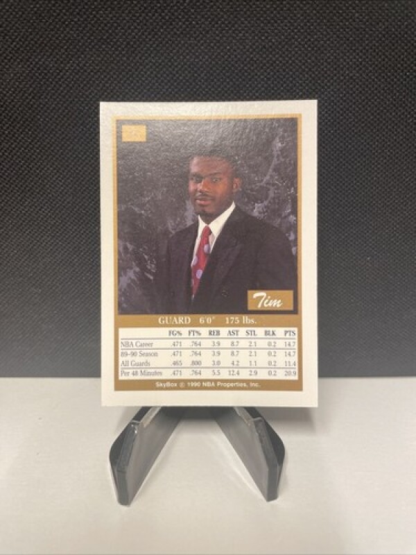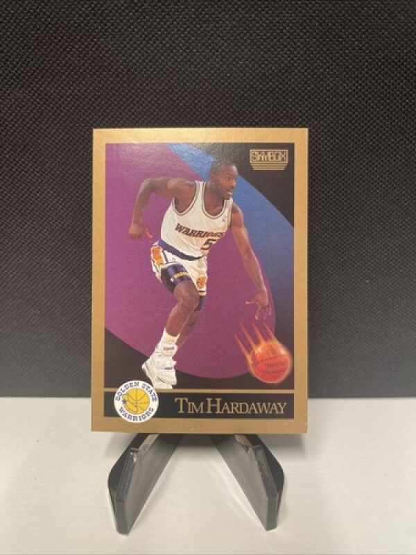 This is a Tim Hardaway 1990 Skybox #95 RC trading card. It features the Golden State Warriors player in his rookie year, with a base set design. The card is made of card stock material and is an original, not a licensed reprint.