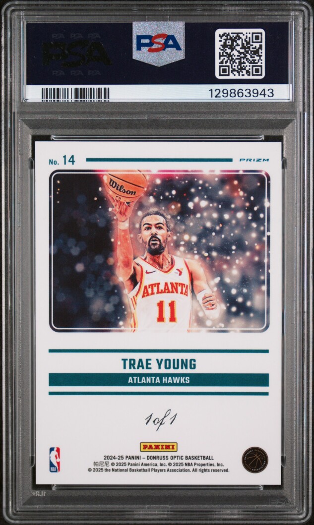 Trae Young 2024-25 Panini Donruss Optic #14 Mythical Gold Vinyl 1/1 PSA10 GEM MT