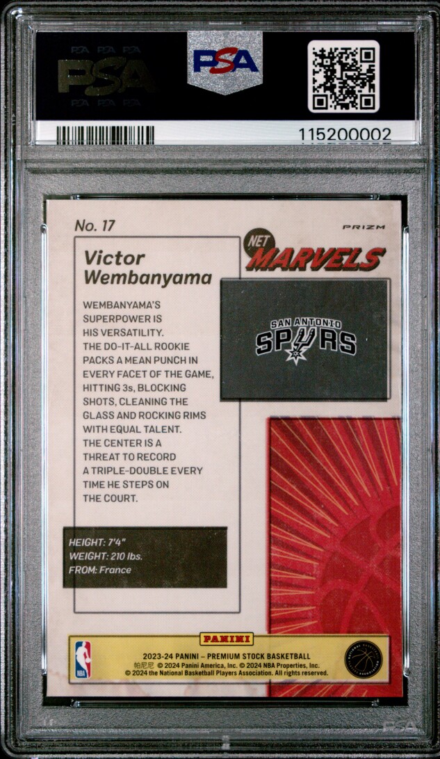 You are purchasing a Victor Wembanyama 2023 Panini Hoops Premium Stock #17 Retro Net Marvels PSA 9. You will receive the exact item in the photographs. Thank you for looking.