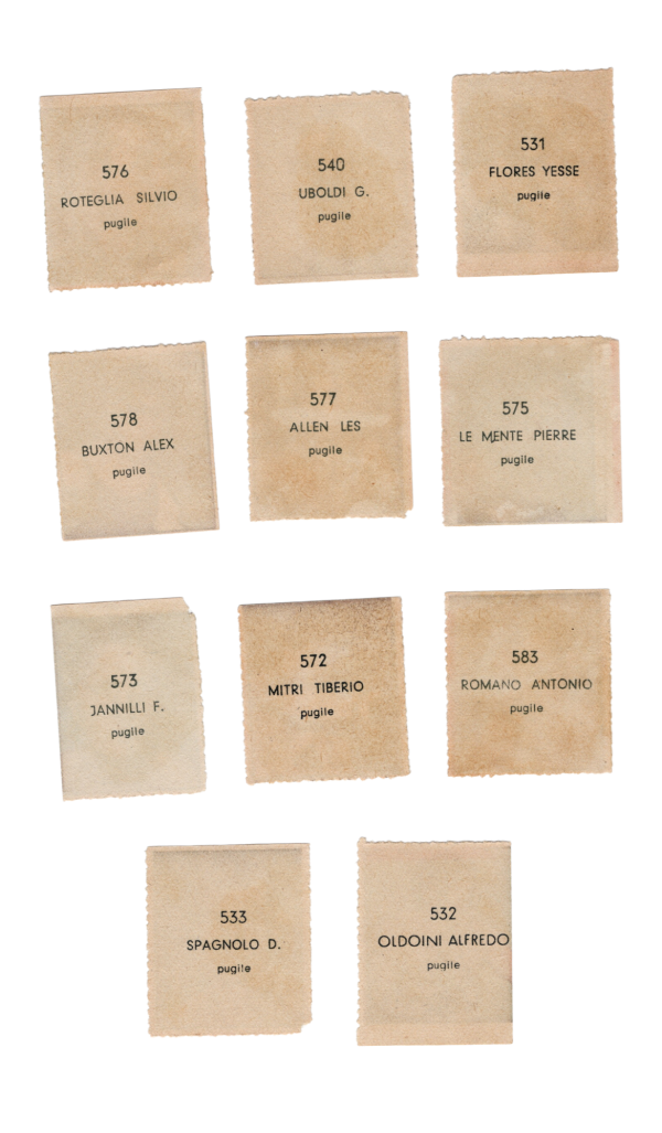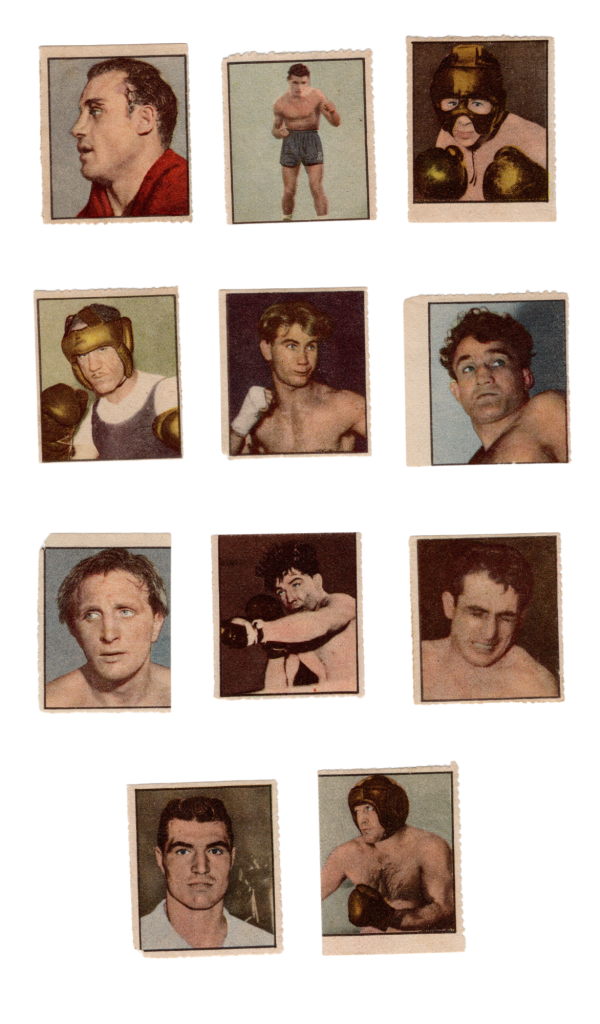 Lot of 45 Albosport Didasco Italian stamp cards featuring boxers. They measure 1.25" x 1.5"