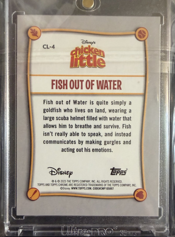 You are purchasing a 2025 Topps Chrome Disney Fish Out Of Water Chicken Little Mickey Mouse Refractor #10/28. Upon purchase you will receive the exact card pictured. Thanks!
