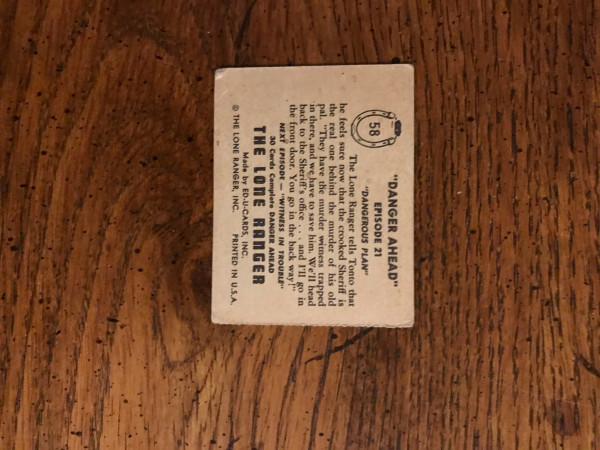 Lone Ranger 1950 Non-ports Card. Very Good Condition.