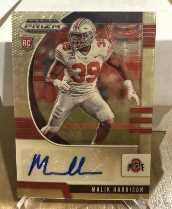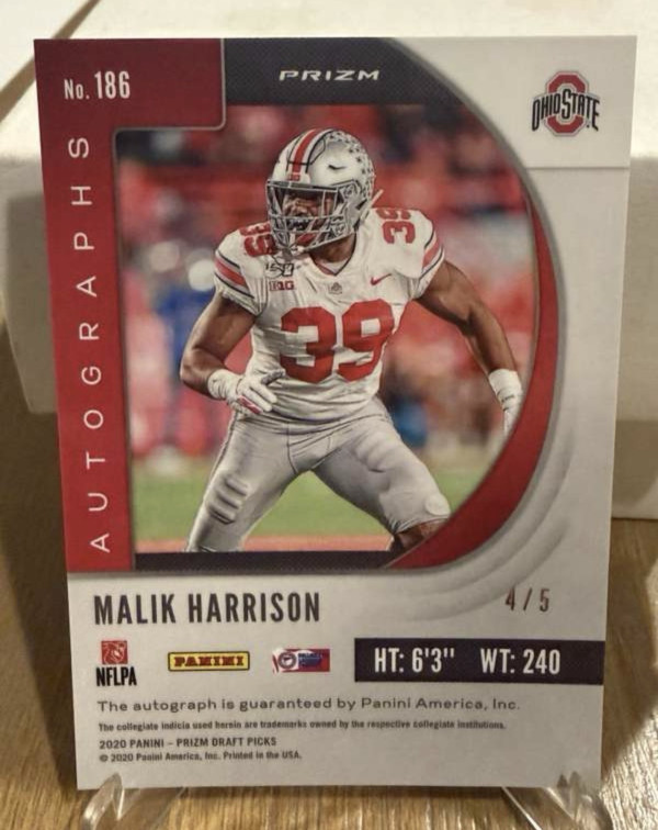#186 Malik Harrison 2020 Panini Prizm Draft Picks - Draft Picks Prizms Gold Vinyl Autographs #/5