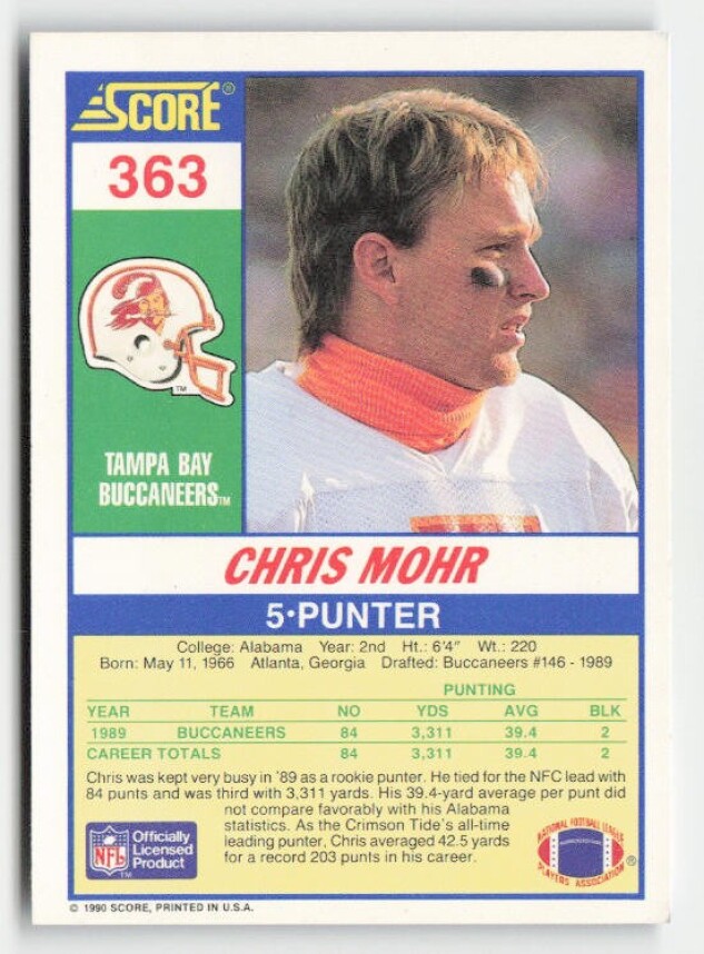 You are purchasing a 1990 Score Chris Mohr #363 RC. You will receive the exact item in the photographs. Thank you for looking.