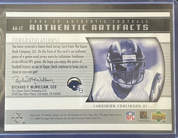 You are purchasing a 2004 SP authentic Jersey relic of LaDainian Tomlinson #30/75. Upon purchase you will receive the exact card pictured. Thanks!