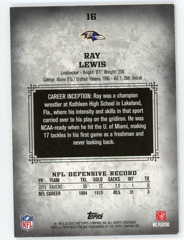 2012 Topps Inception #16 Ray Lewis Blue /252 ***VF-NM***