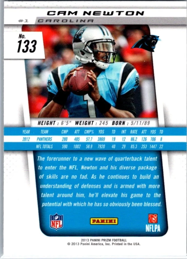 This is a nice example of a 2013 Panini Prizm #133 Cam Newton