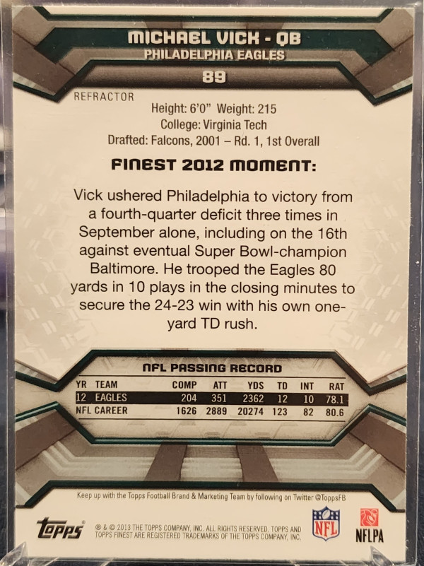 2013 Topps Finest Michael Vick Refractor