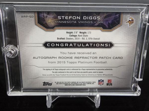 2015 Topps Platinum Stefon Diggs RPA /50. Rookie Player worn patch autograph!