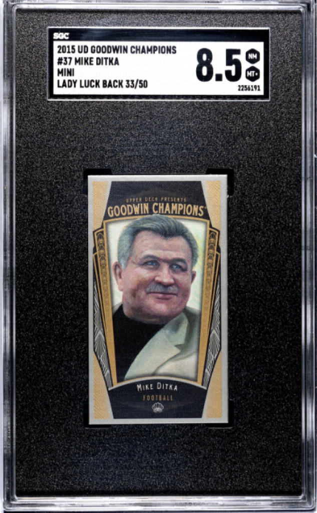 2015 Upper Deck Goodwin Champions #37 Mike Ditka Mini Lady Luck Back SGC 8.5
