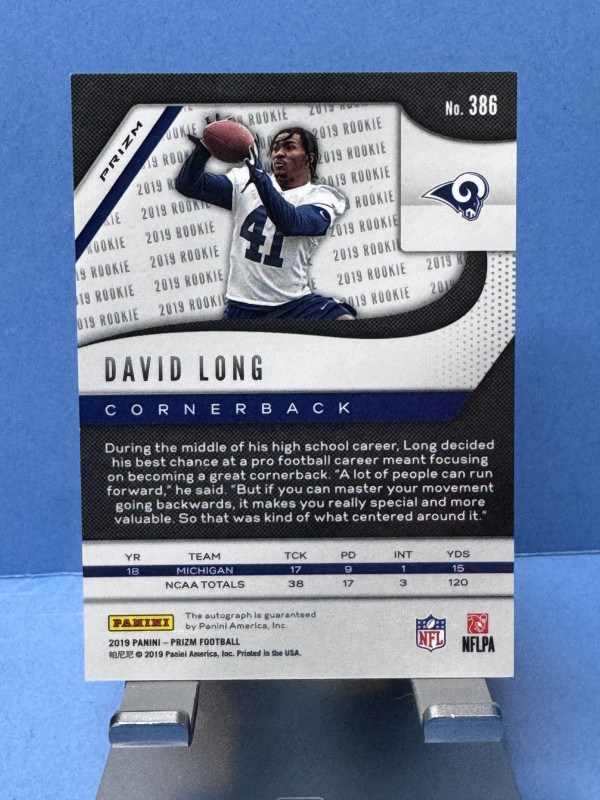 2019 Panini Prizm #386 David Long Green Pulsar Prizm Autograph