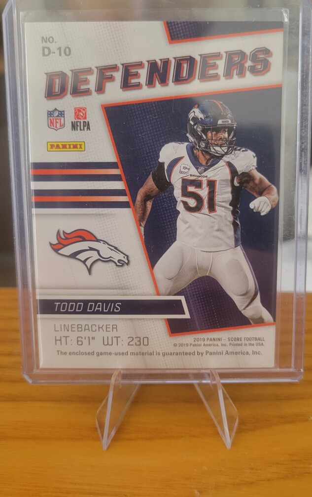 2019 Todd Davis Panini Score #D-10 Defenders Jerseys Patch