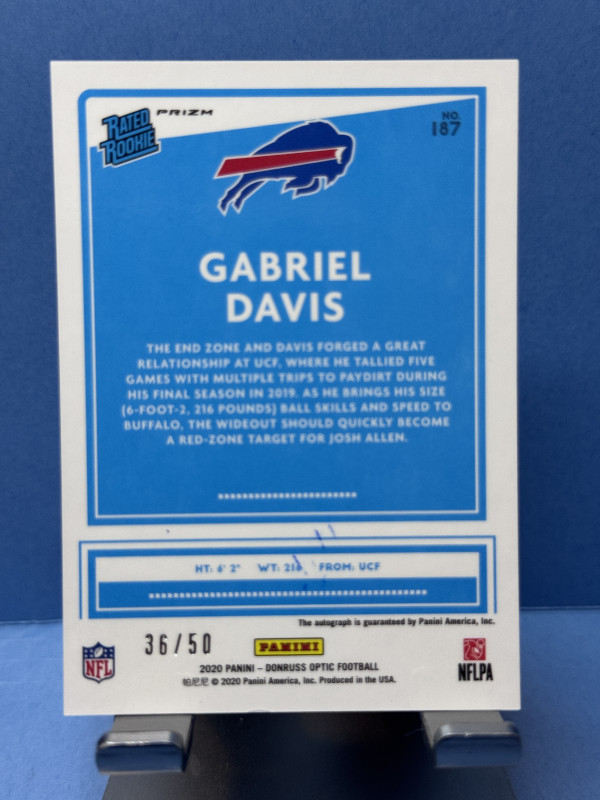 2020 Panini Donruss Optic #187 Gabriel Davis Purple Rated Rookie Autograph #/50