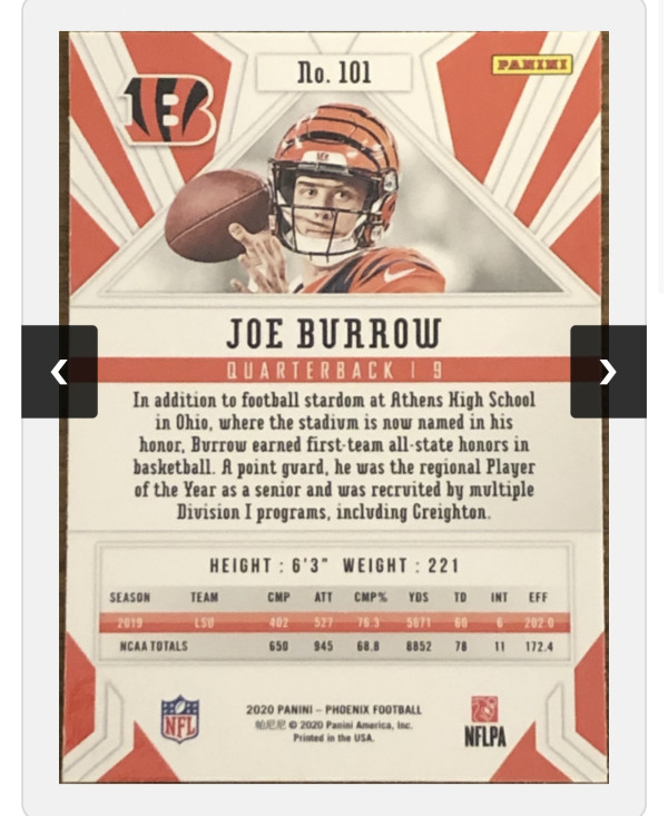 2020 Panini Phoenix Fire Burst #101 Rookie Card Joe Burrow