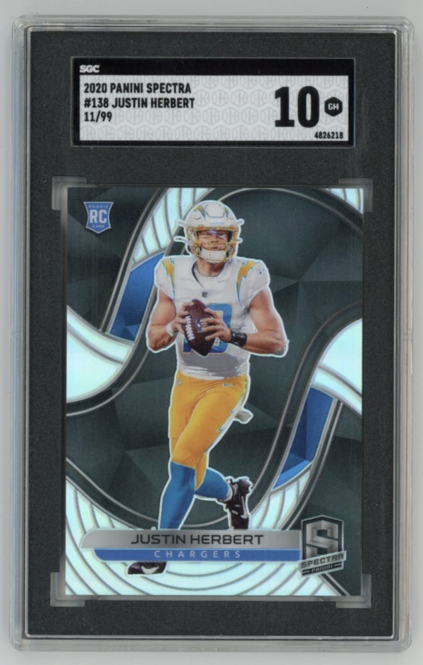 2020 Panini Spectra JUSTIN HERBERT Rookie Card RC #/99 Los Angeles Chargers 138 - SGC 10 GEM