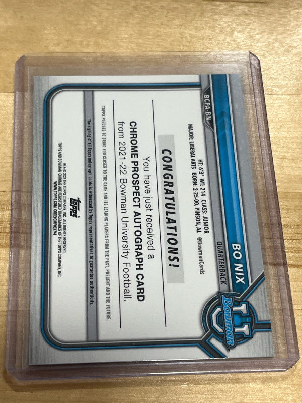 2021 Bowman Chrome Prospect Auto Bo Nix