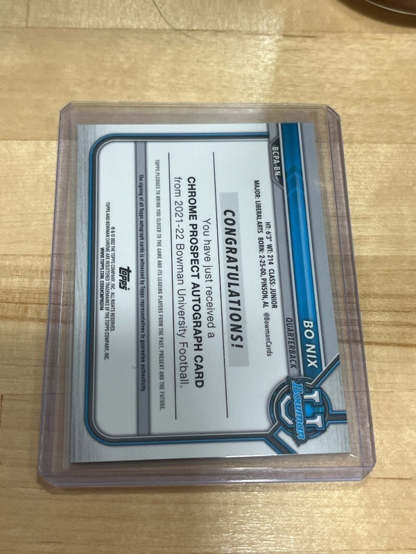2021 Bowman Chrome Prospects Auto Bo Nix Auto /50