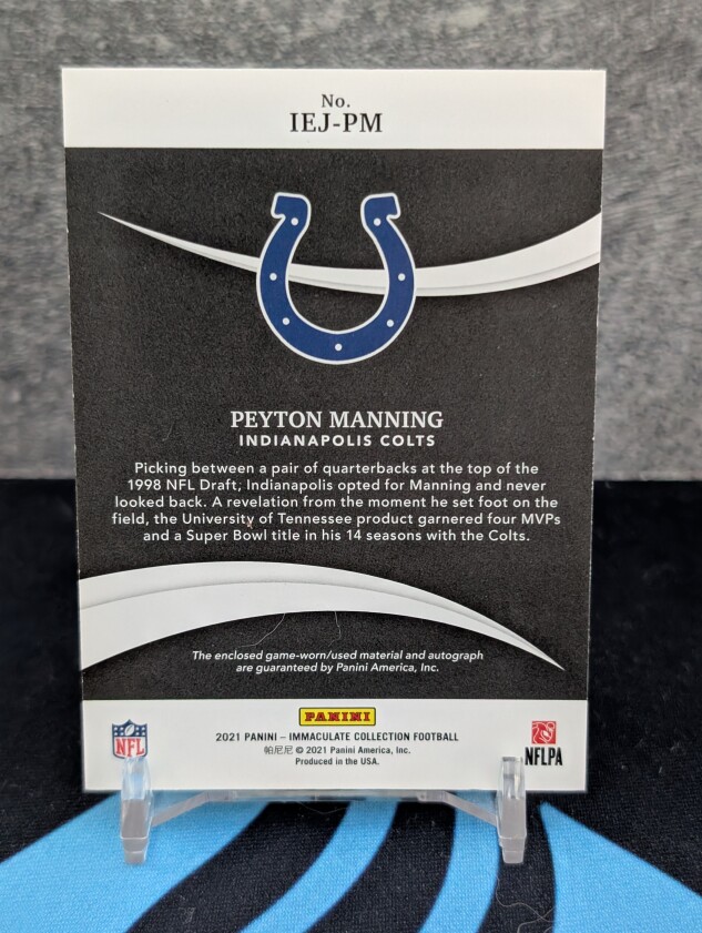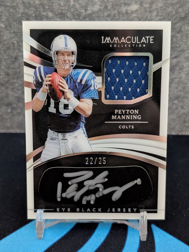 This is a 2021 Immaculate Eye Black / Game Used Patch Auto Peyton Manning /25. The exact card is pictured.