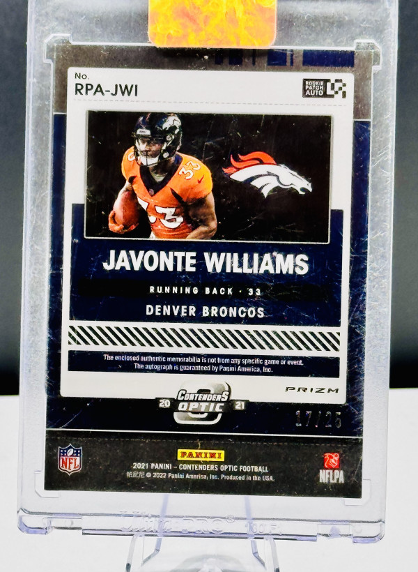 2021 Panini Contenders Optic Javonte Williams Orange RPA /25 RPA-JWI Color Match