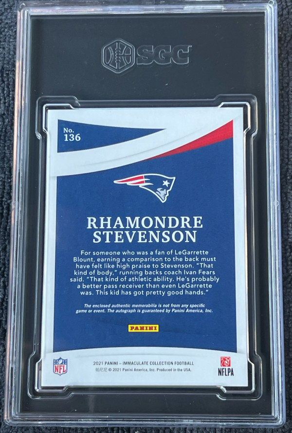 2021 Panini Immaculate Collection Rookie Patch Auto #136 Rgamondre Stevenson /99