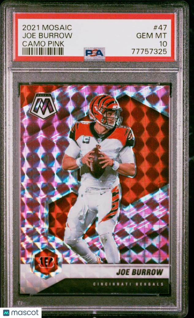 You are purchasing a 2021 Panini Mosaic Joe Burrow #47 PSA 10. You will receive the exact item in the photographs. Thank you for looking.