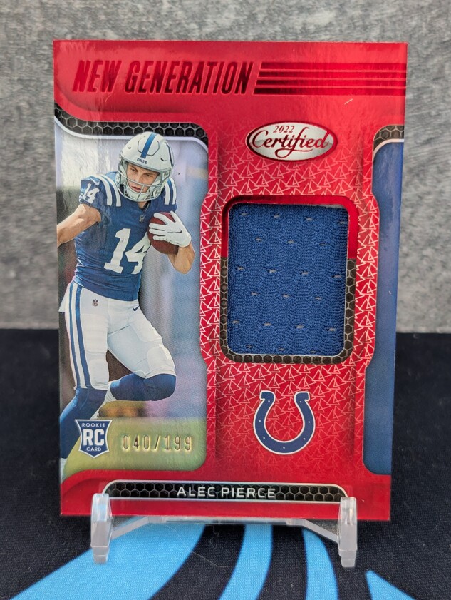 This is a 2022 Certified New Generation Jerseys Mirror Red /199 Alec Pierce. The exact card is pictured.