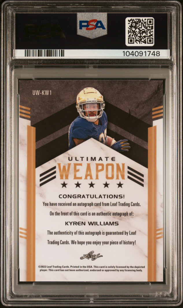 2022 Leaf Ultimate Draft Ultimate Weapon Autographs Kyren Williams Ultmt.weapon Au-Plt.spc.