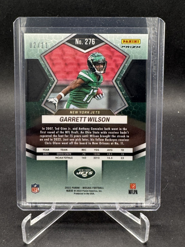 2022 Mosaic Garrett Wilson Pink Swirl FOTL Exclusive /11 Jets RC NFL Debut
