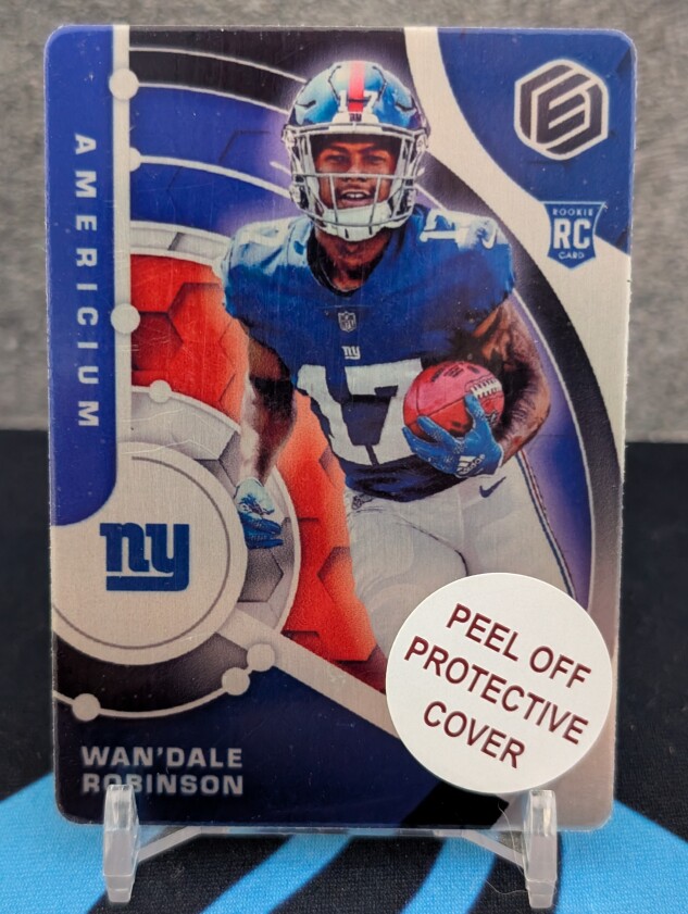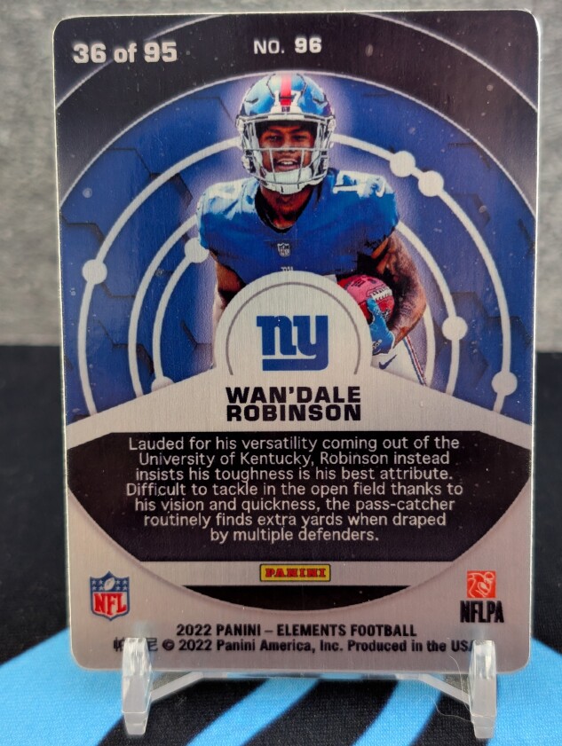 This is a 2022 Panini Elements Wan'Dale Robinson Americium parallel numbered to 95. The exact card is pictured.