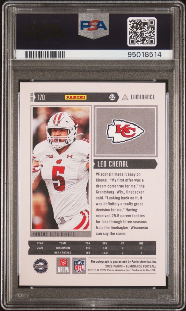 2022 Panini Luminance Leo Chenal Autograph-Blue PSA MINT 8 ROOKIE