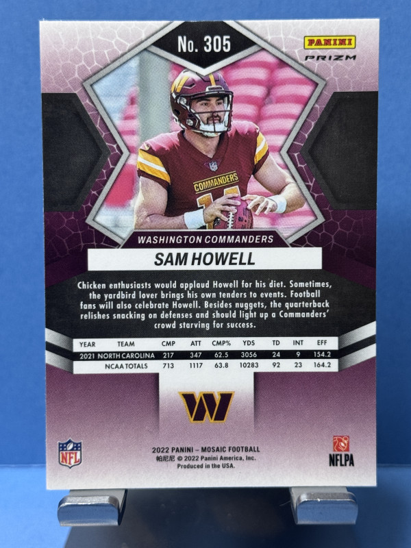 2022 Panini Mosaic Sam Howell #305 Orange Mosaic Prizm RC