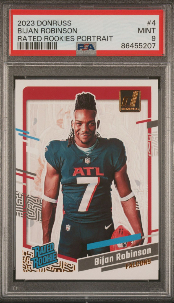 Checkout this card!!! A beauty graded by PSA. 2023 Bijan Robinson Rated Rookie Portrait.
