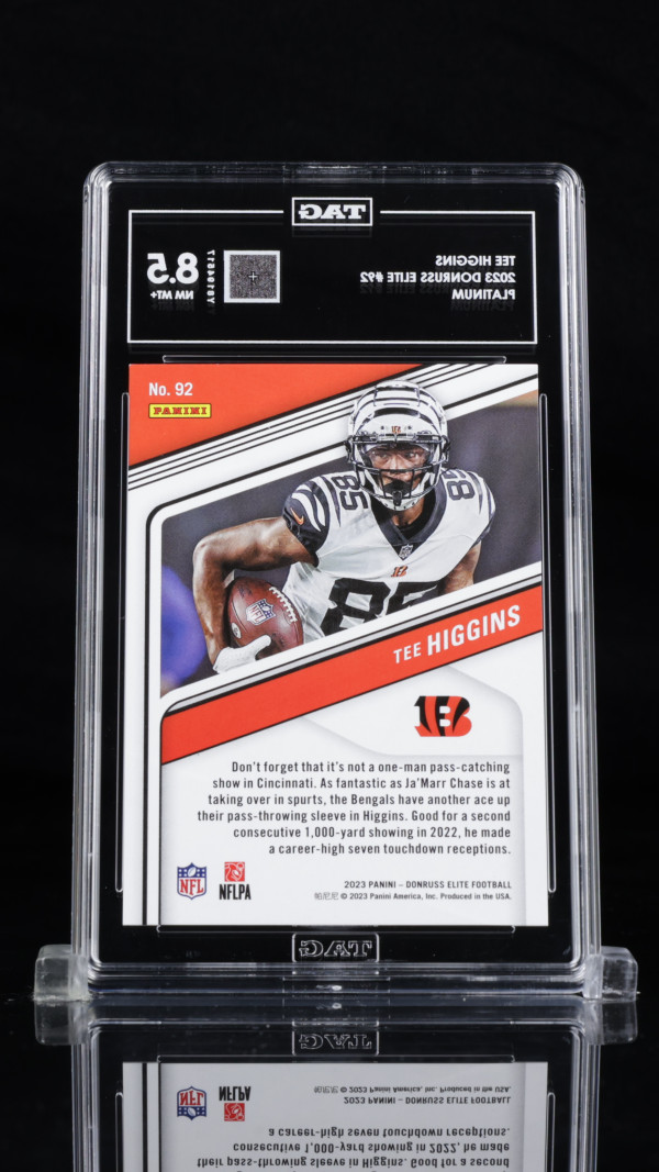 You are purchasing a 2023 Donruss Elite Tee Higgins #92 Platinum Short Print 3/3 TAG 8.5. You will receive the exact item in the photographs. Thank you for looking.