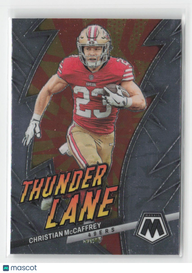 You are purchasing a 2023 Panini Mosaic Christian McCaffrey #TL-CMC Thunder Lane. You will receive the exact item in the photographs. Thank you for looking.