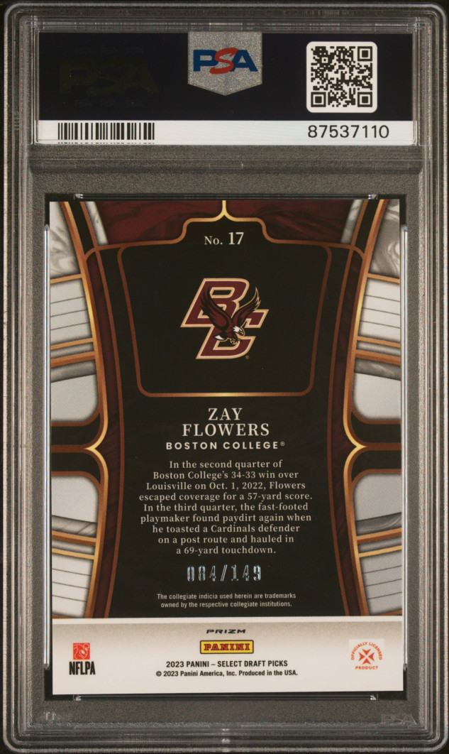 Zay Flowers 2023 Select Draft Picks Red. Graded PSA 9.