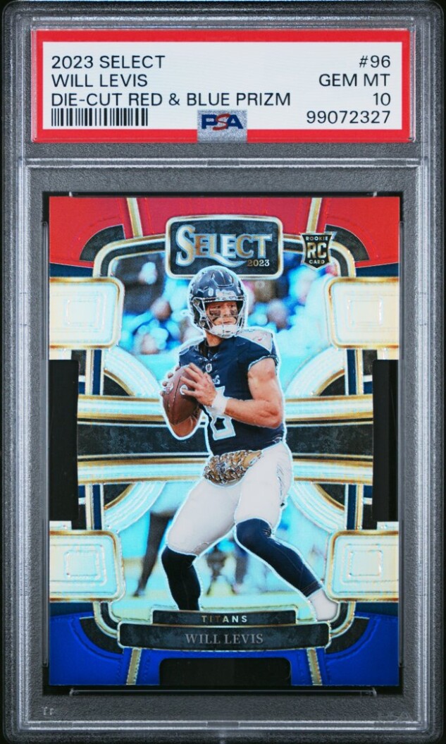 Thanks for your looking at my listing 2023 Panini Select Will Levis Die-cut Red & Blue Prizm PSA 10. Let me know if you have any questions!