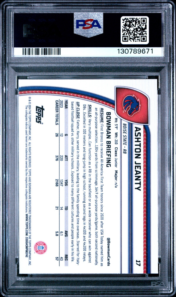 You are purchasing a 2024 Bowman Sapphire Ashton Jeanty Bowman 1st 1st Bowman #17 PSA 9. You will receive the exact item in the photographs. Thank you for looking.