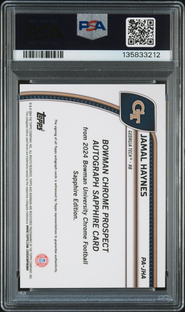 You are purchasing a 2024 Bowman Sapphire Jamal Haynes Orange Refractor Auto 7/25 #PAJHA PSA 10 Auto 10. You will receive the exact item in the photographs. Thank you for looking.