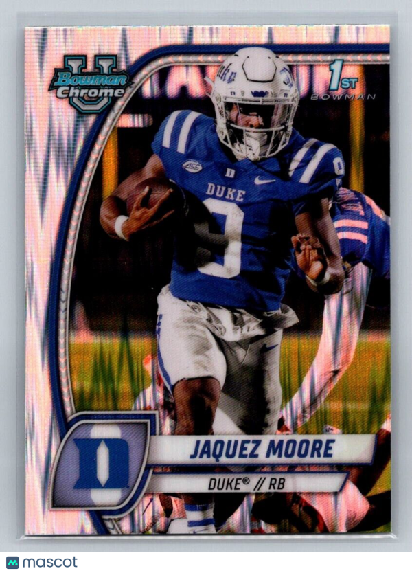 You are purchasing a Bowman Univeristy Stealth Jaquez Moore #92 Duke Blue Devils. You will receive the exact item in the photographs. Thank you for looking.