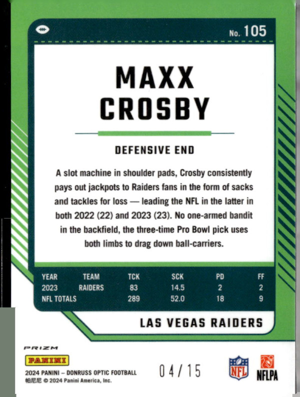 2024 DONRUSS OPTIC ICE #105 MAXX CROSBY (04/15)