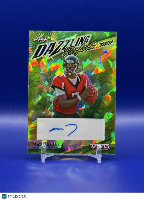 Score big with this rare 2024 Leaf Vivid Dazzling Performers Green Crystal parallel featuring an authentic Michael Vick autograph! Limited to just 4 copies, this stunning card is a must-have for Atlanta Falcons fans and serious NFL collectors looking to add a true showpiece to their collection.