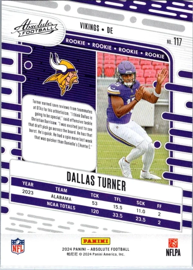 This is a nice example of a 2024 Panini Absolute #117 Dallas Turner Retail