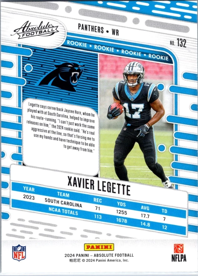 This is a nice example of a 2024 Panini Absolute #132 Xavier Legette Retail