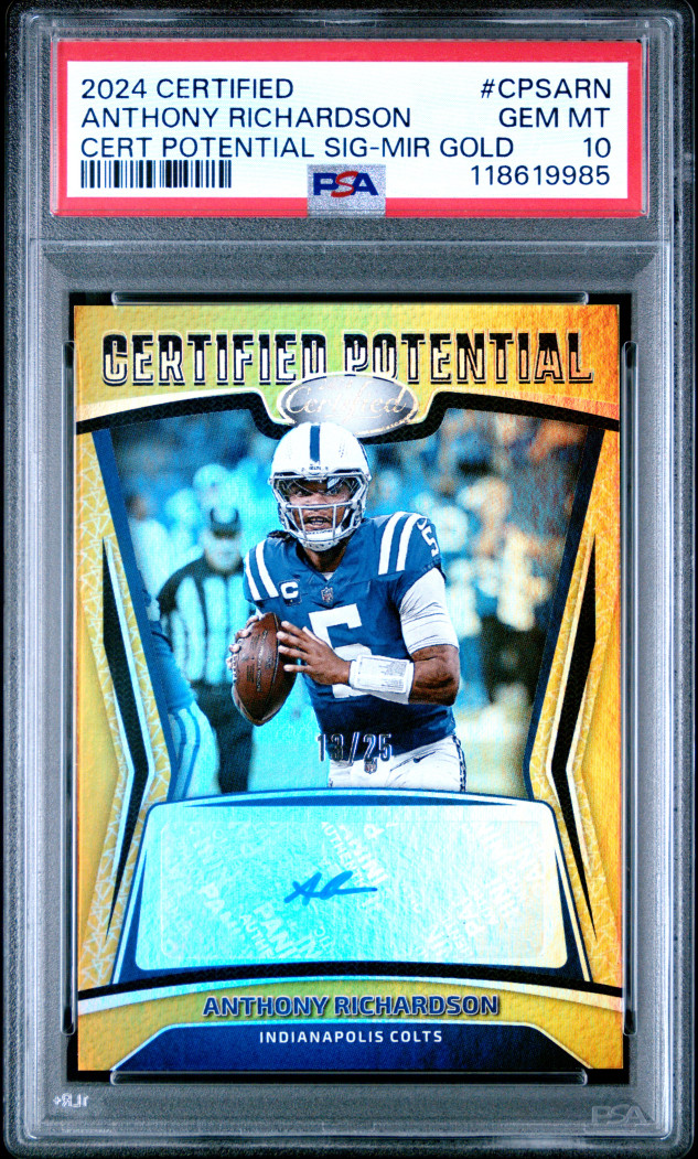 2024 Panini Certified Certified Potential Signatures Anthony Richardson Cert Potential Sig-Mir Gold /25.